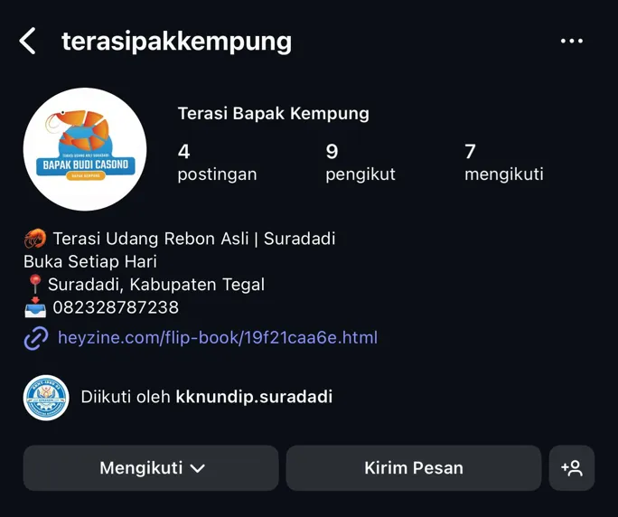Pembuatan @terasipakkempung mendukung saluran promosi untuk mendukung penjualan terasi secara online melalui promosi visual guna menjangkau lebih banyak konsumen.